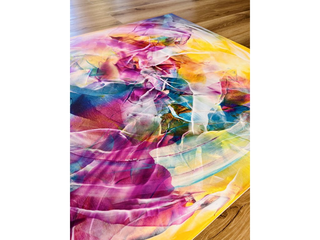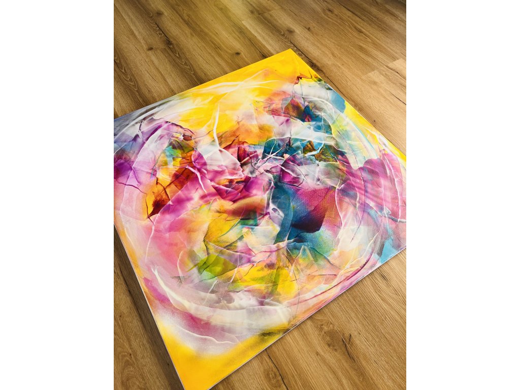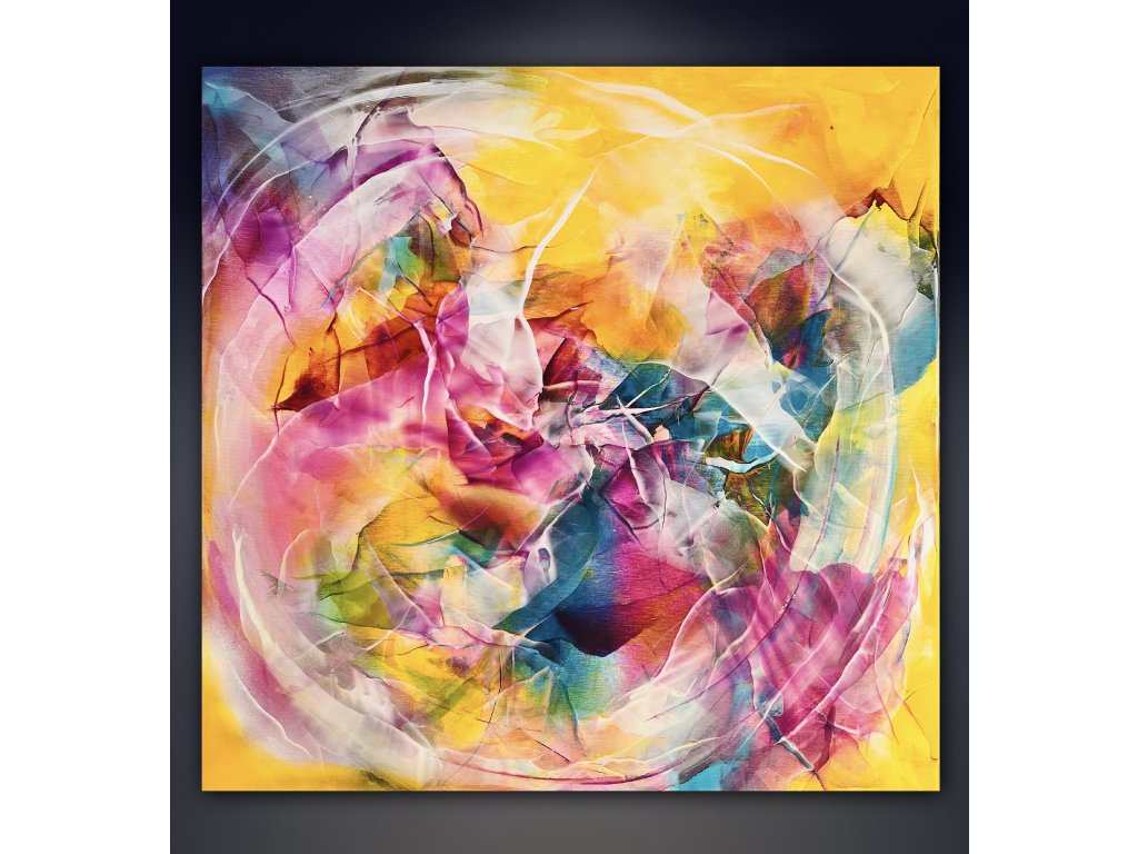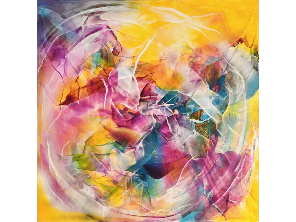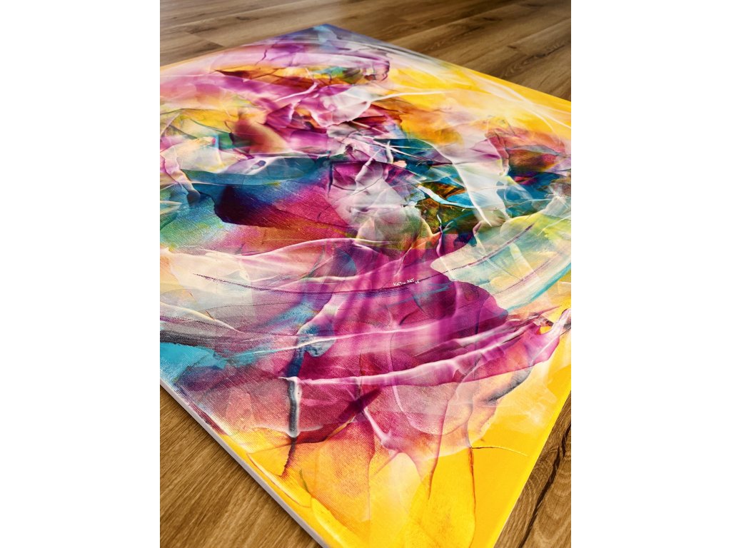 Když jsem tvořila tento obraz, nechala jsem se unášet pocity a myšlenkami na to, co v sobě každý z nás nosí. "Uvnitř tebe" není jen obraz, je to zrcadlo duše. Teplá záře žlutých tónů představuje energii, která nás obklopuje a žene vpřed, zatímco pulzující růžové, modré a fialové odstíny uvnitř symbolizují vnitřní svět – naše pocity, sny a touhy.